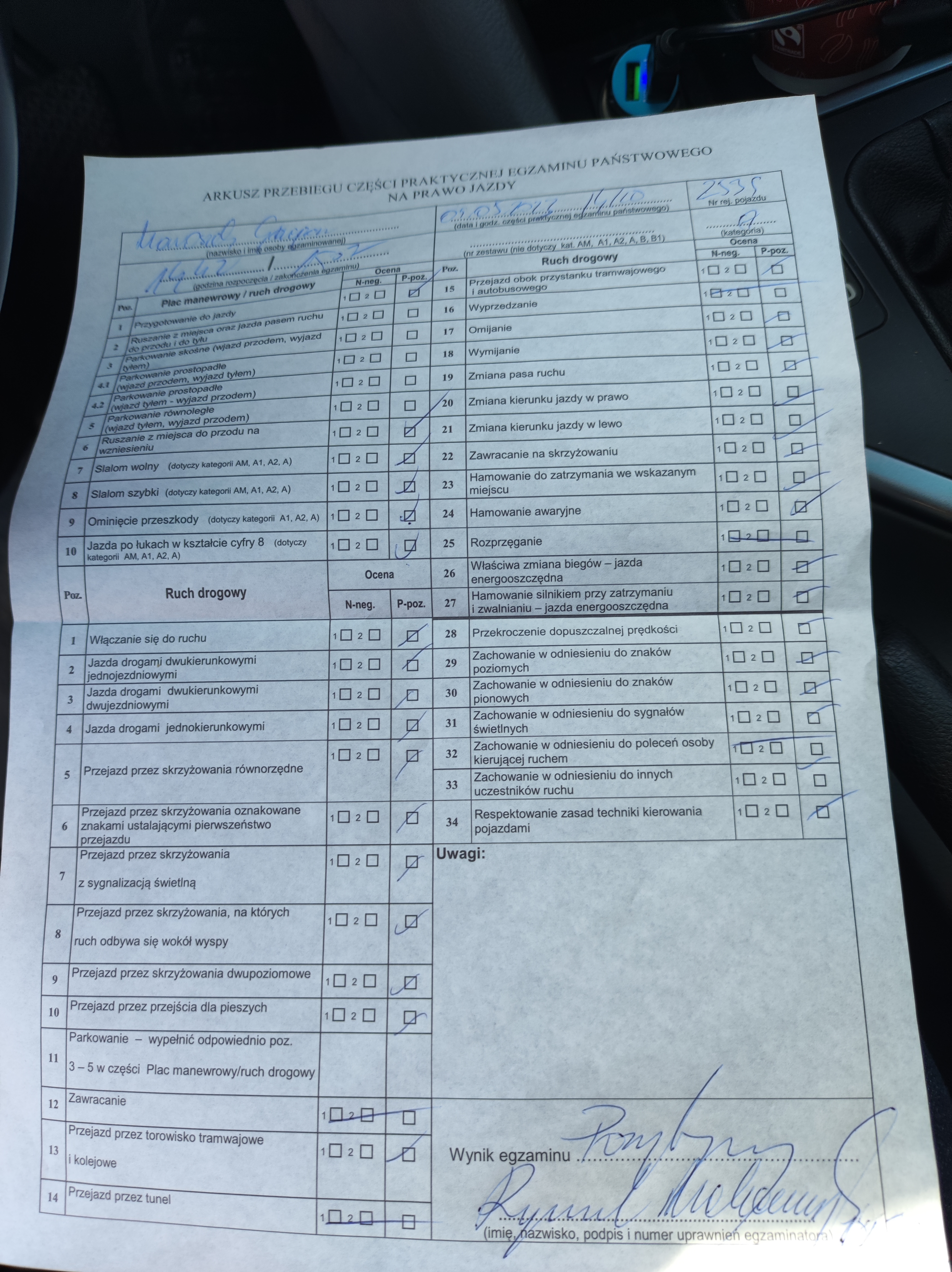 Mamy to. Udało się dziś we Wrocławiu zdać. Mogę się pochwalić że egzaminator nie miał najmniejszych zastrzeżeń